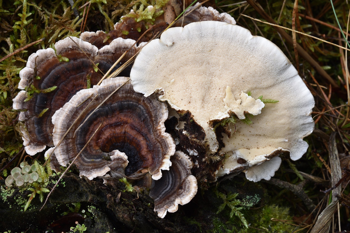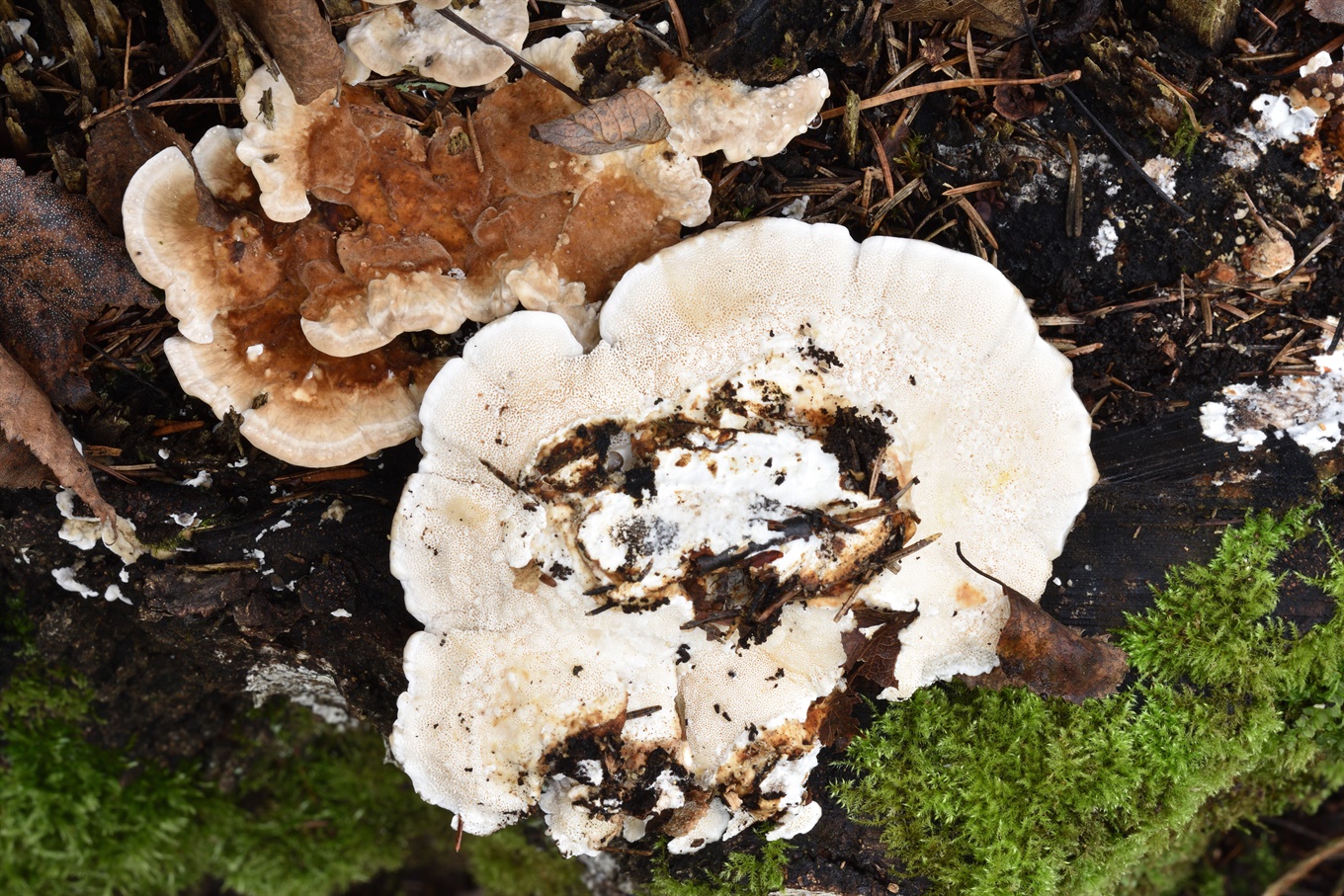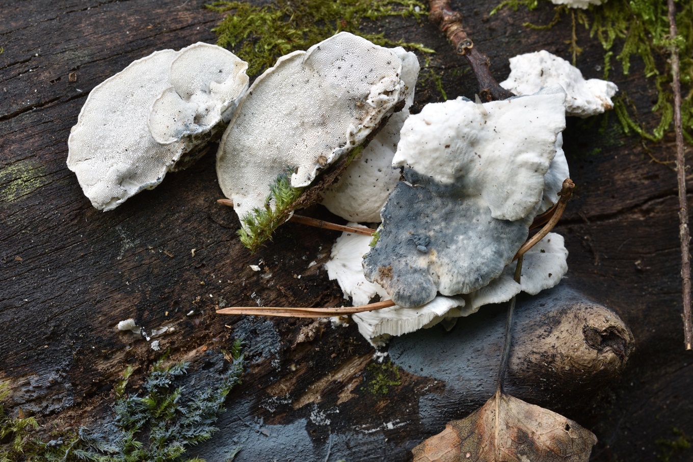16-17 - Fomitopsis serialis (На ели); 18-19 - Phlebiopsis gigantea (?) (На ели (?)); 20-21 - Mycena tintinnabulum.