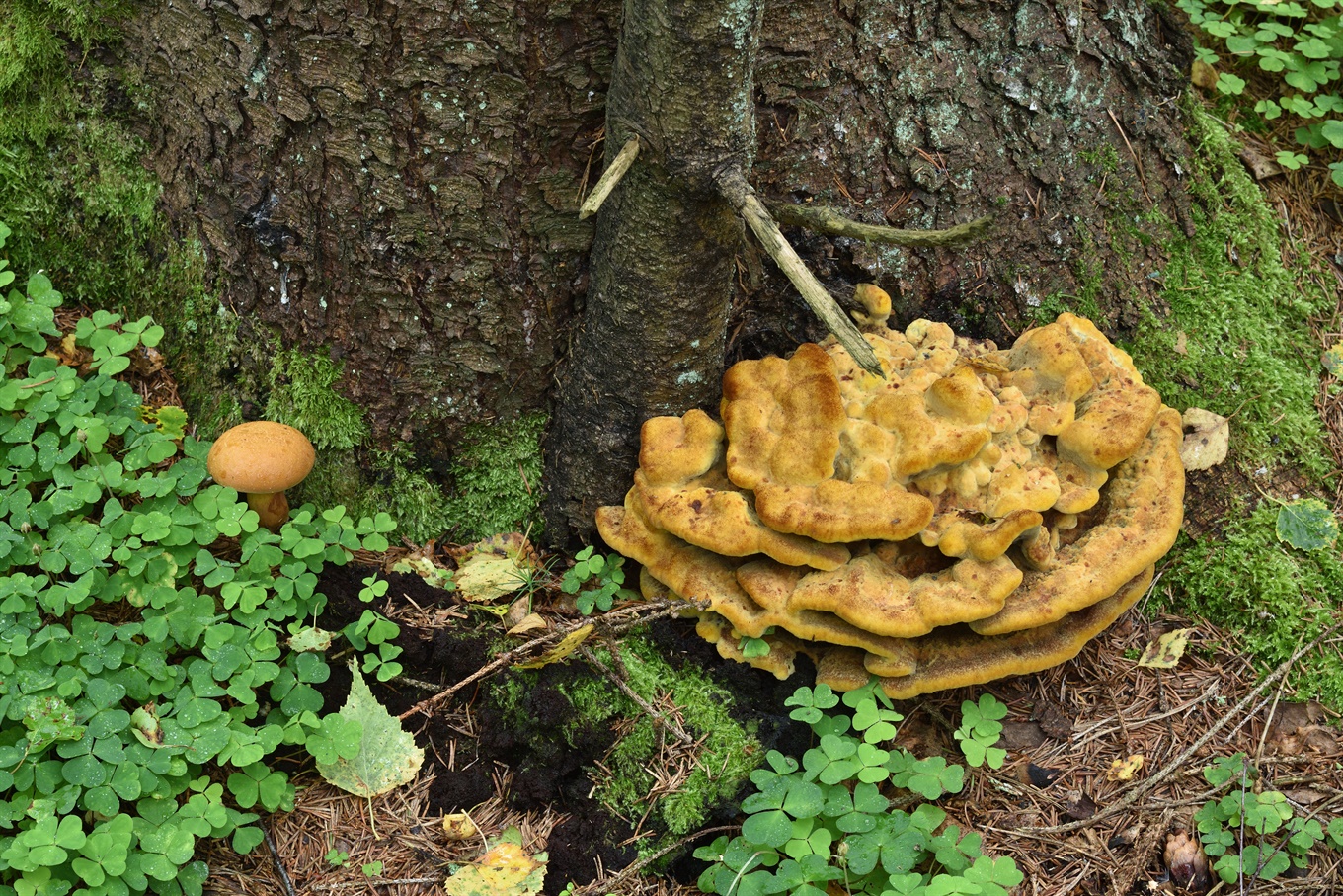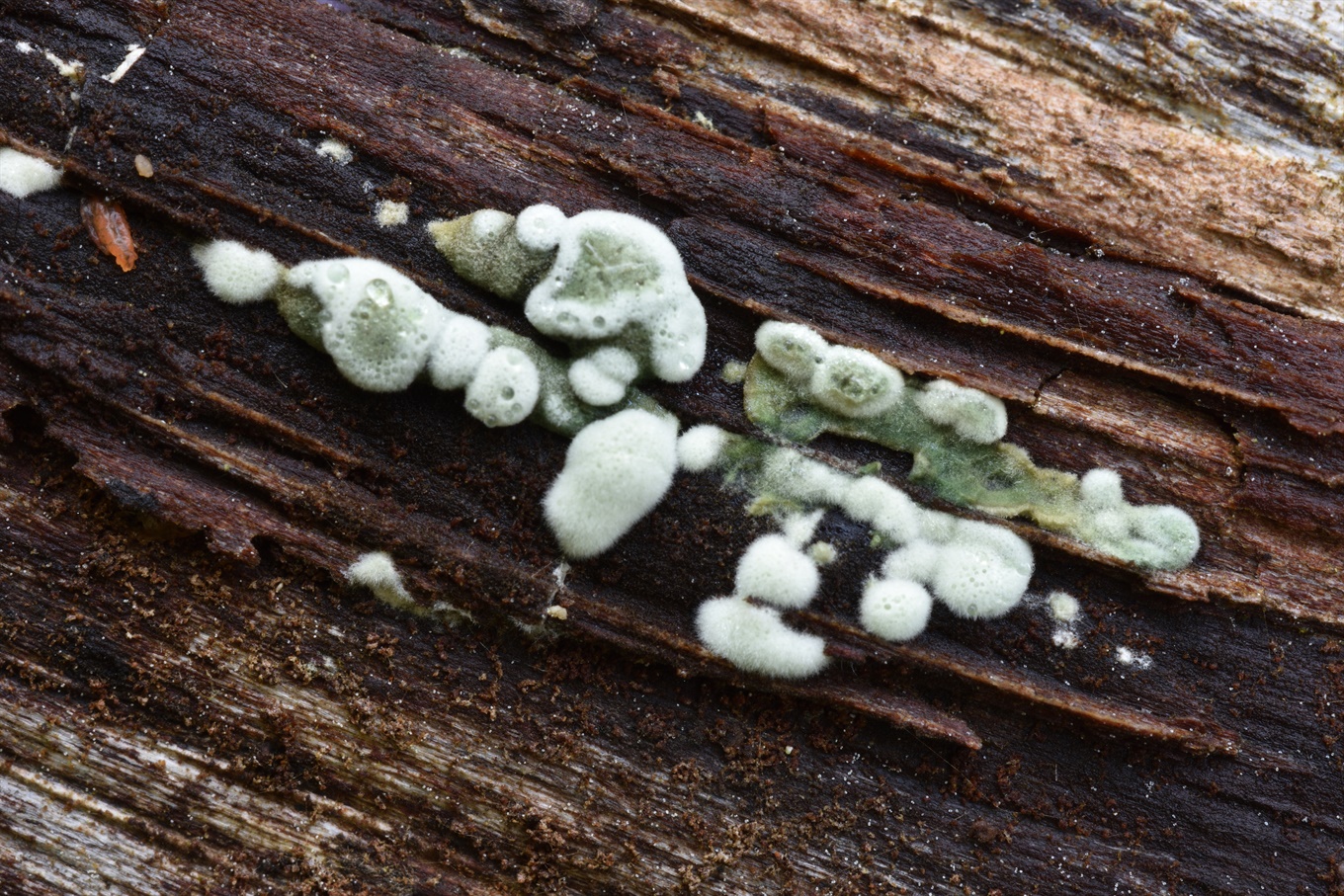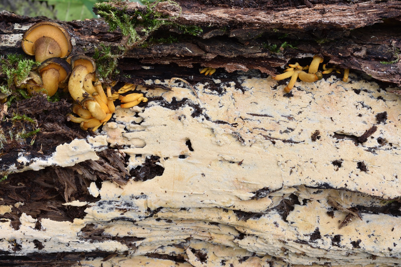 16-17 - Fomitopsis serialis (На ели); 18-19 - Phlebiopsis gigantea (?) (На ели (?)); 20-21 - Mycena tintinnabulum.
