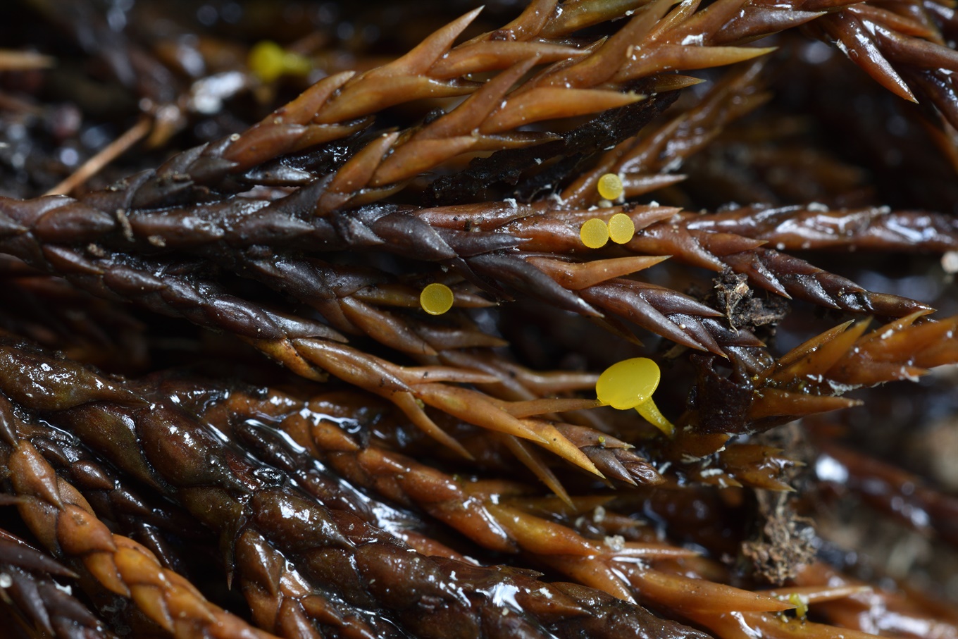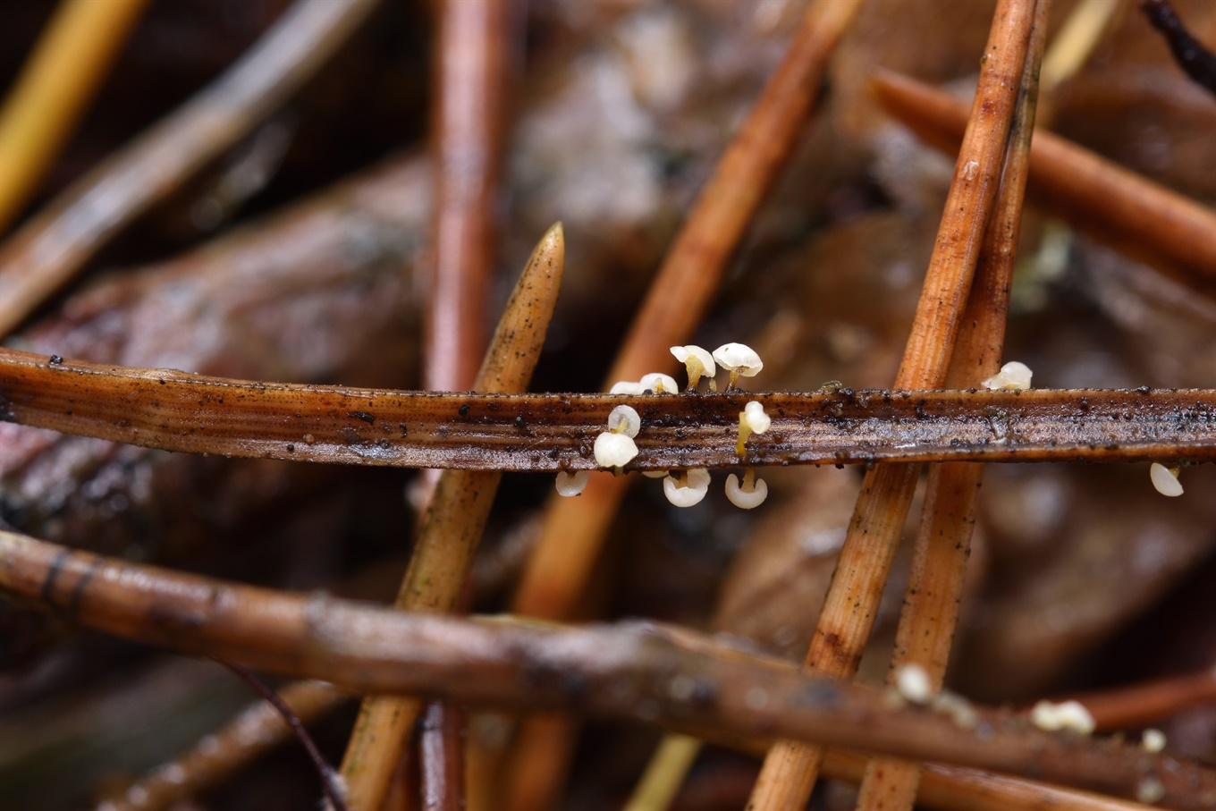19-21 - Sarcoscypha austriaca; 22-23 - Heyderia sp. (На сосновой иголке);