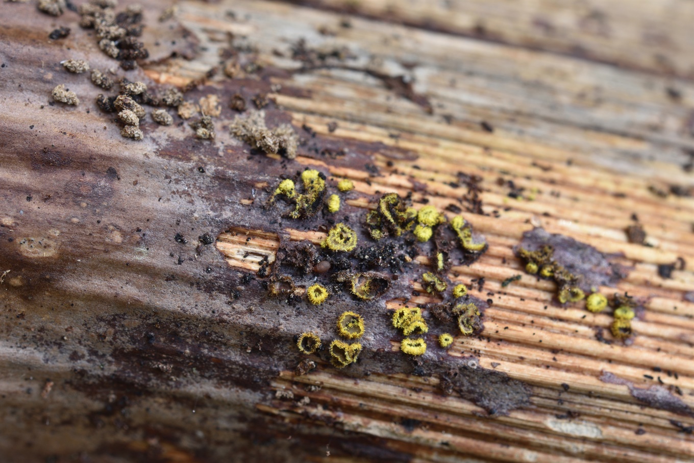 11-13 - Byssonectria terrestris (На вырубке); 14-15 - Cistella sp. (?) (В торце осинового бревна).