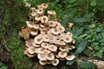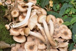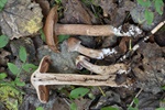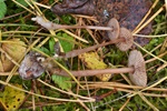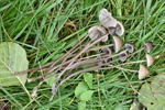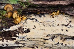 11 - Nectria cinnabarina s.l.; 12 - Это, вроде бы, Strobilrus esculentus, хотя рос он среди мицелия Чесночника (см. далее), и поначалу был мной за него принят; 13-14 - Mycetinis querceus (Сначала нашёлся мицелий с сильнейшим запахом, потом обнаружил и плодовые тела, пусть и не в лучшей форме, но вид для меня новый); 15-16 - ? (Вроде, просто на почве);