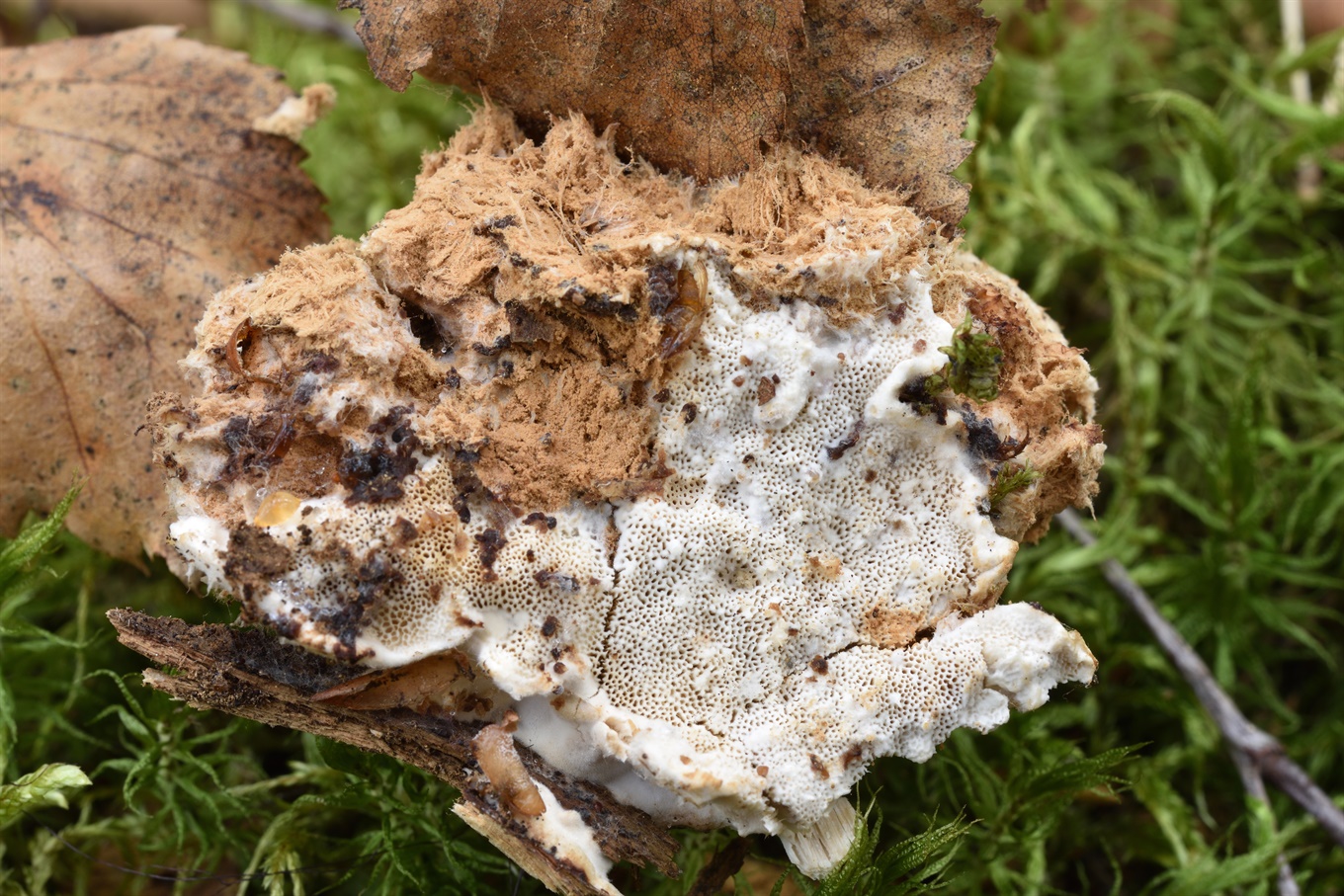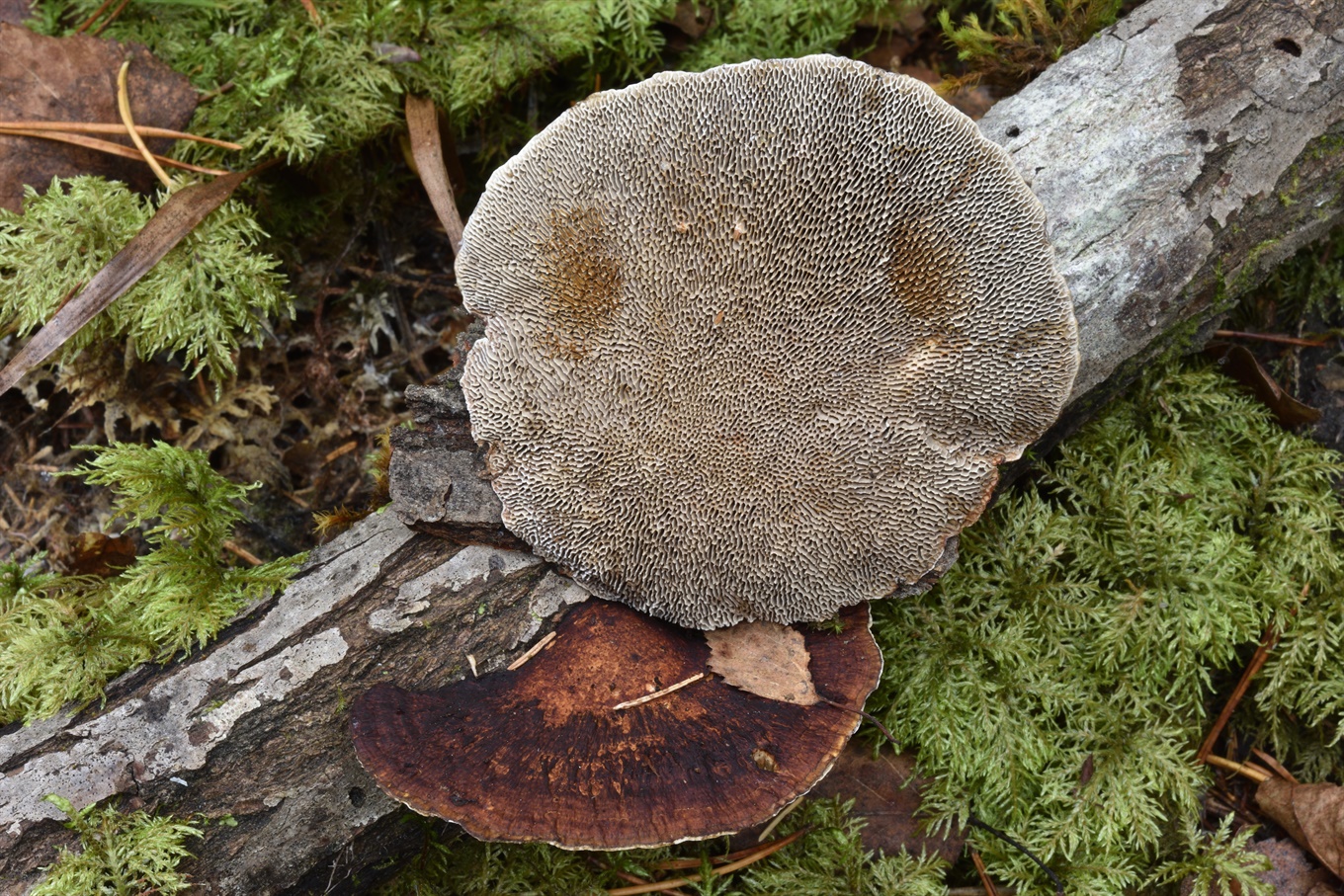 13-17 - ? (На стволе осины. Как слабая версия, Trametes ochracea);