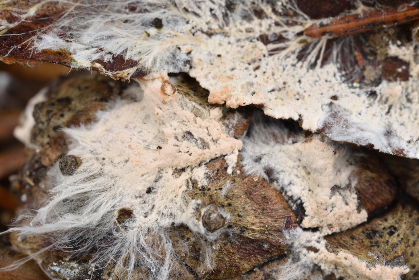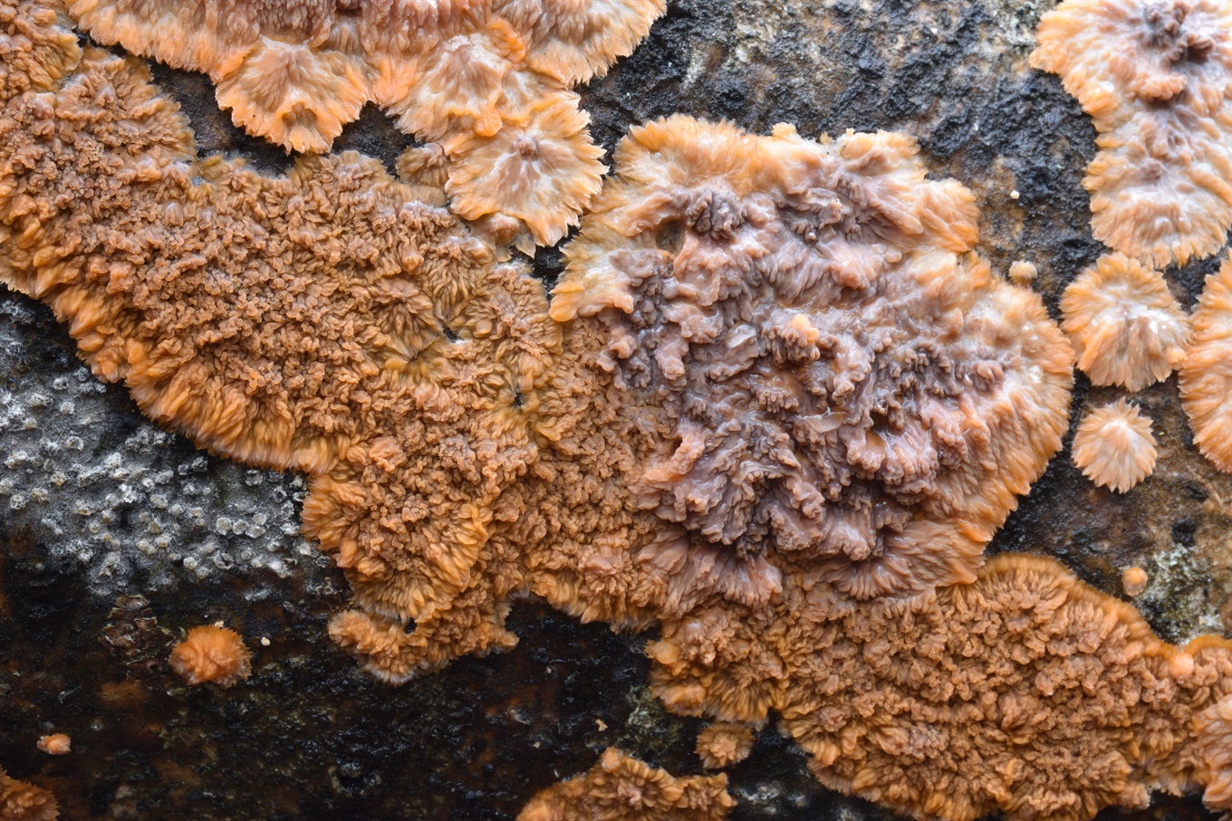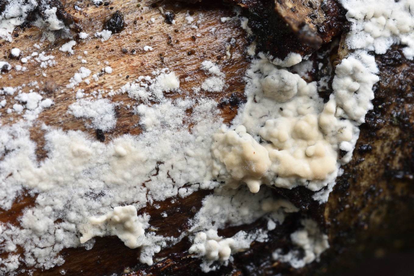 1-2 - Radulomyces confluens (?); 3-8 - В этот день часто попадались "снежные волосы", и я попробовал найти Exidiopsis effusa, который, как принято думать, может быть с ними ассоциирован. Нашёл только очень тонкие, практически невидимые глазом плёнки. Даже не знаю, оно ли это. Спор я не обнаружил, но было что-то типа неразвитых базидий, если я правильно понимаю;