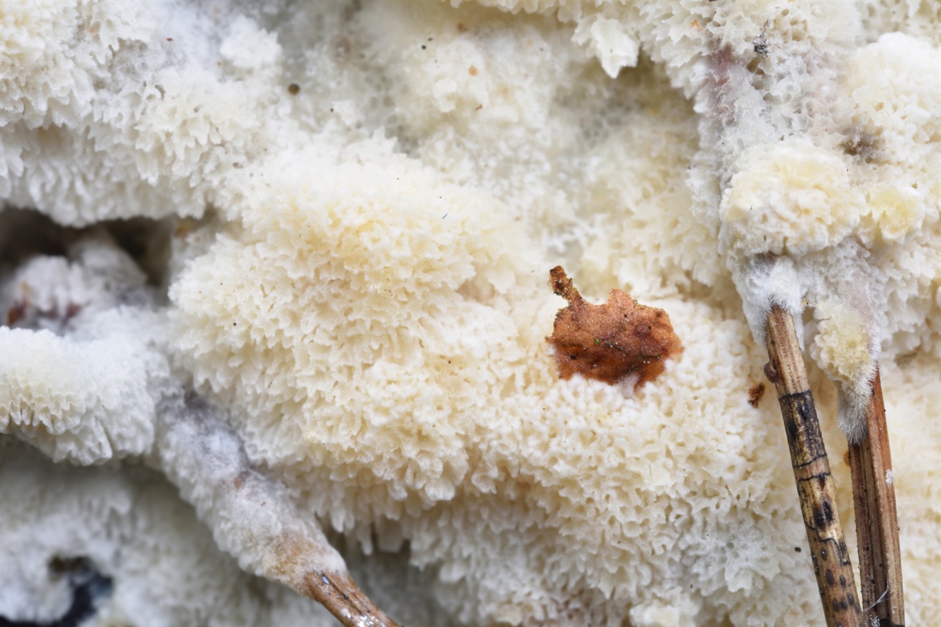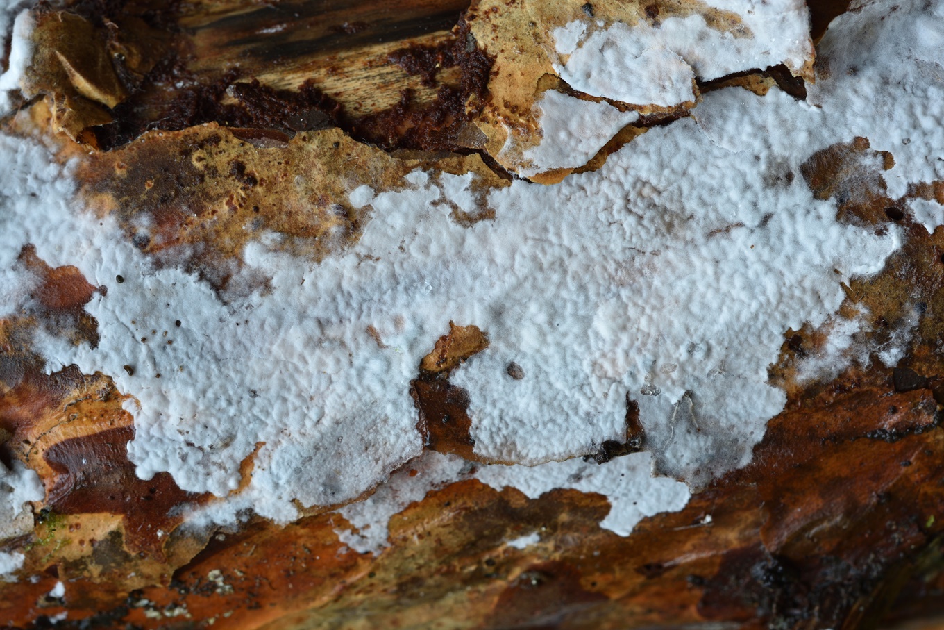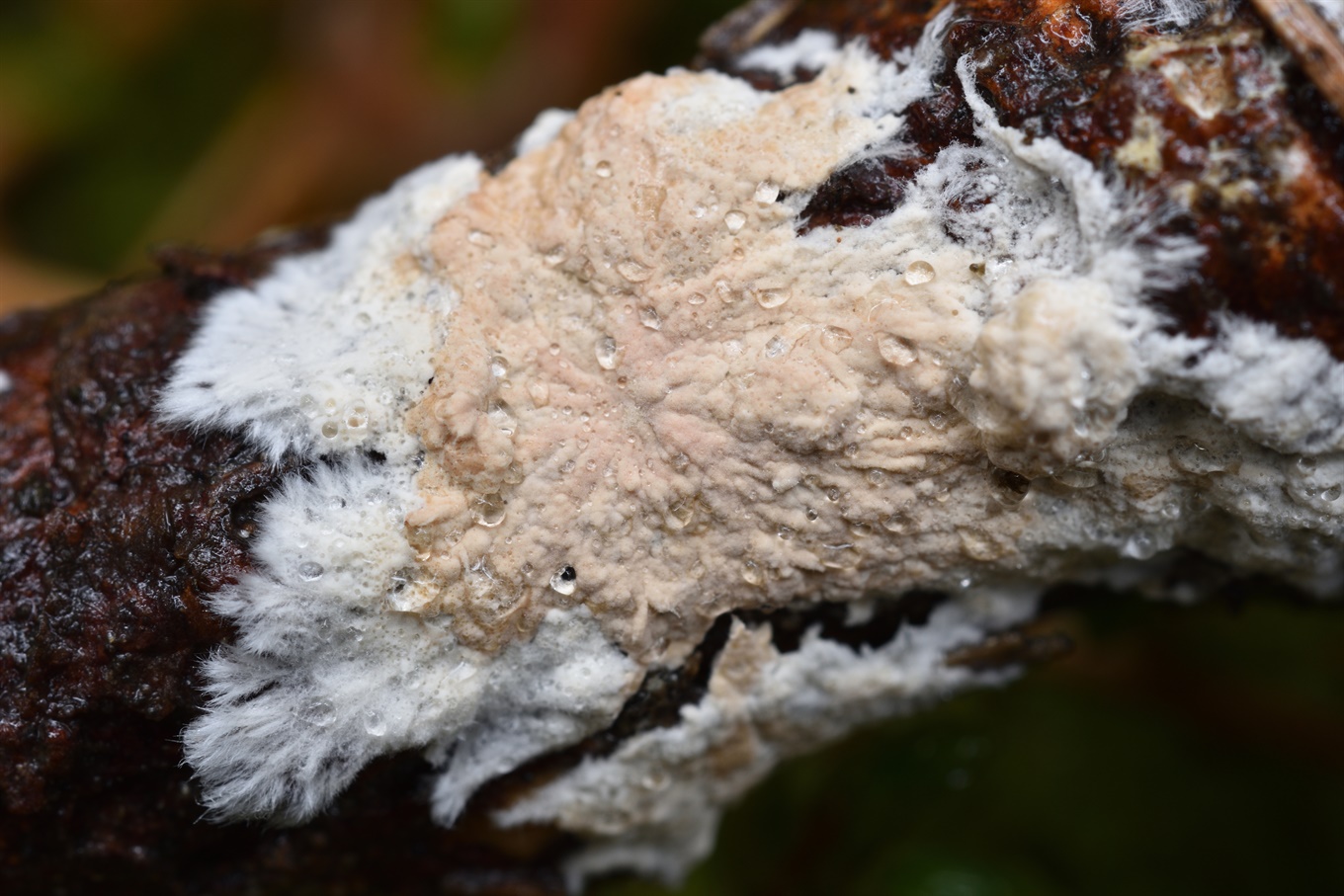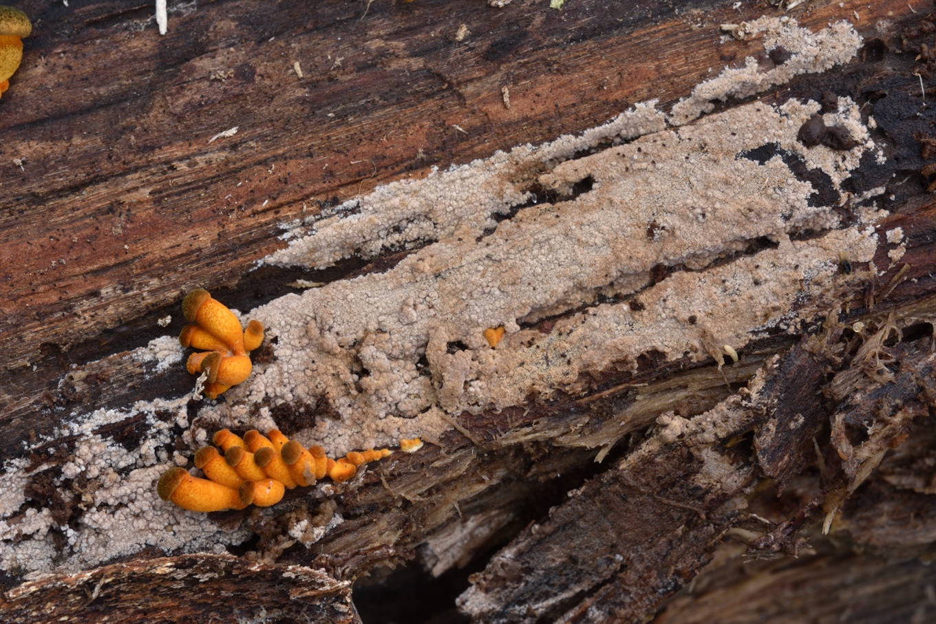 1-2 - Radulomyces confluens (?); 3-8 - В этот день часто попадались "снежные волосы", и я попробовал найти Exidiopsis effusa, который, как принято думать, может быть с ними ассоциирован. Нашёл только очень тонкие, практически невидимые глазом плёнки. Даже не знаю, оно ли это. Спор я не обнаружил, но было что-то типа неразвитых базидий, если я правильно понимаю;