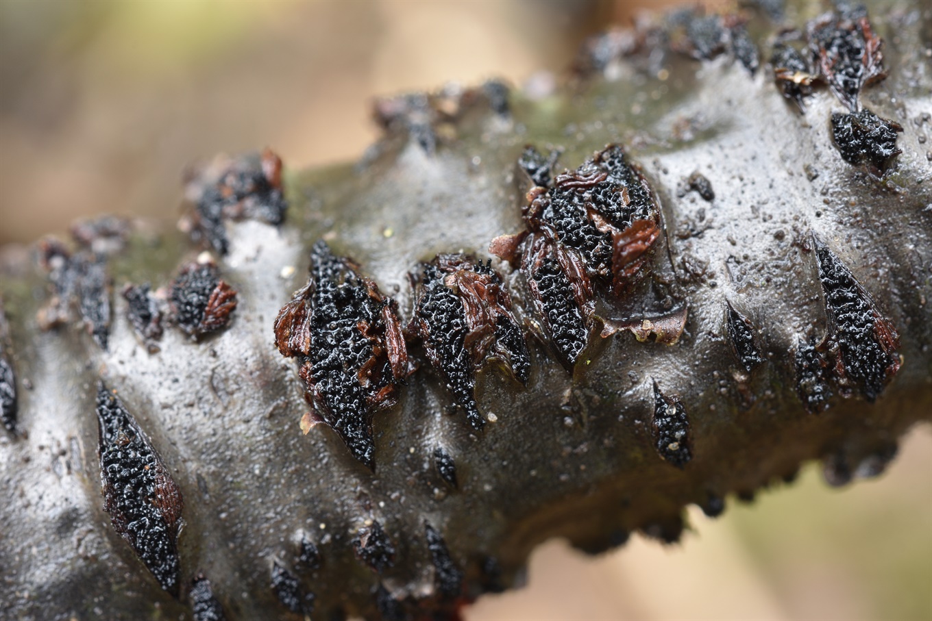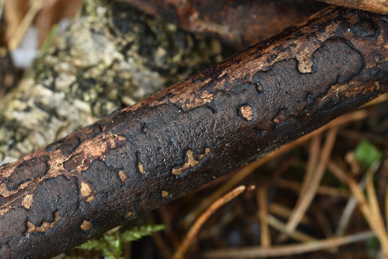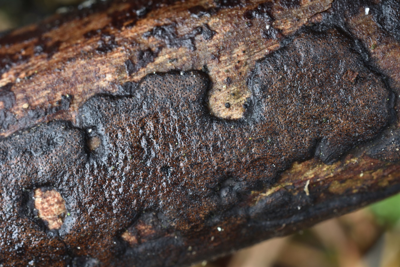 5-10 - Cryptosphaeria ligniota (?) (Вроде, на осине. Это всё росло на одном стволе и, наверное, тут один вид, хотя на последних двух фото стромы подушковидные, а на других фото более плоские. Также тут можно увидеть Nectria s.l. и (на фото 8) какие-то оранжеватые желатинистые образования);