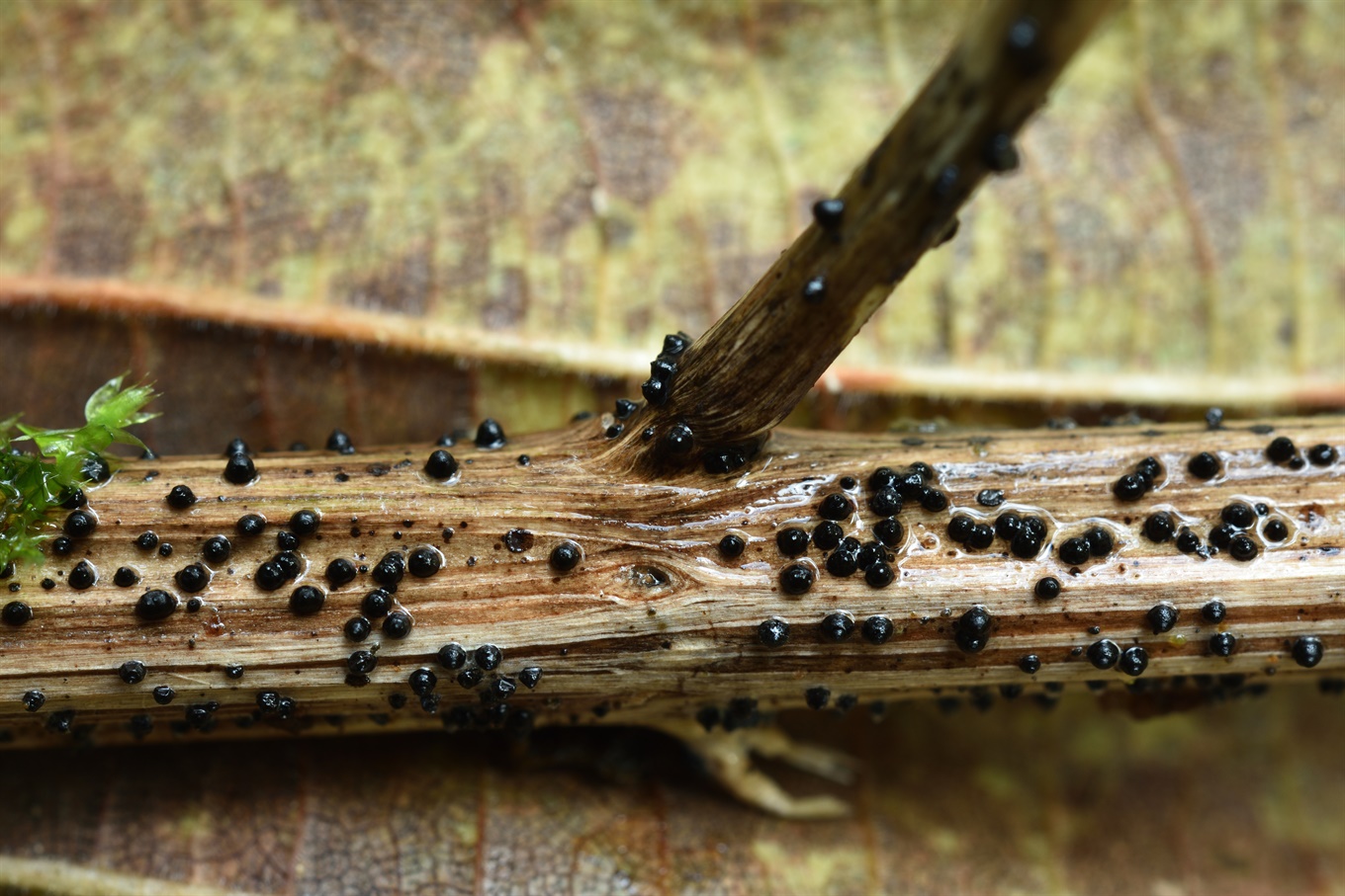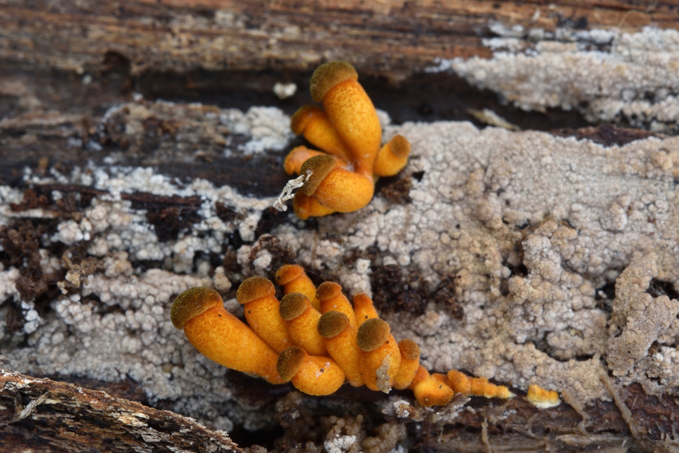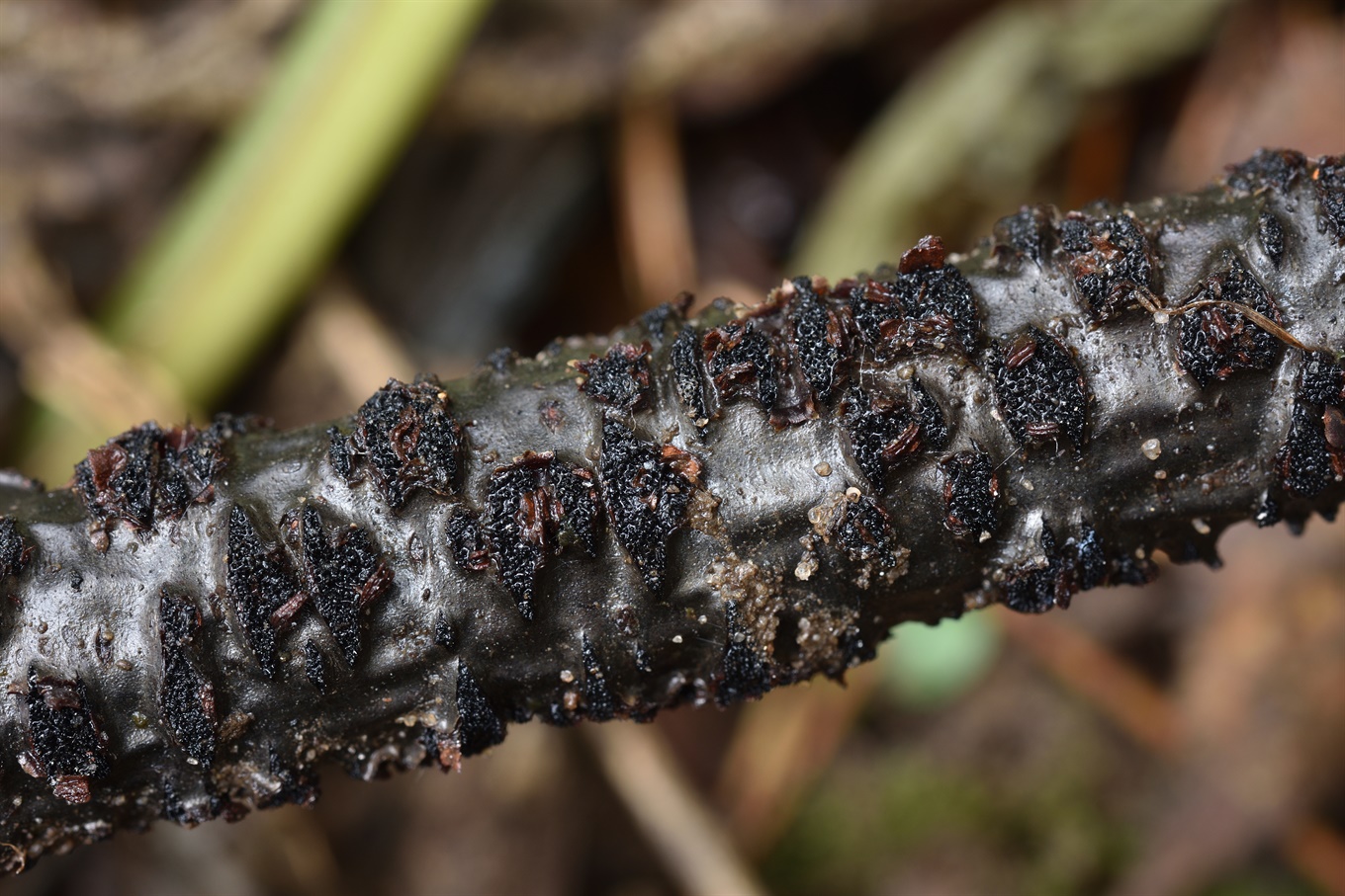 5-10 - Cryptosphaeria ligniota (?) (Вроде, на осине. Это всё росло на одном стволе и, наверное, тут один вид, хотя на последних двух фото стромы подушковидные, а на других фото более плоские. Также тут можно увидеть Nectria s.l. и (на фото 8) какие-то оранжеватые желатинистые образования);