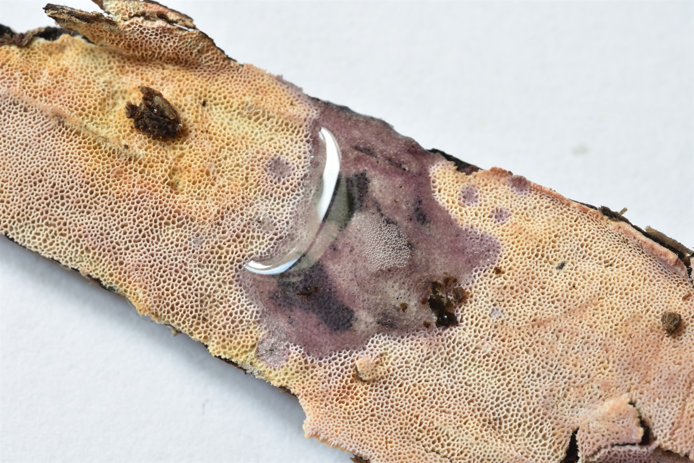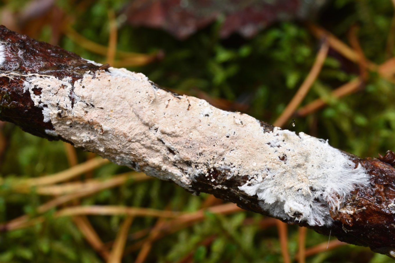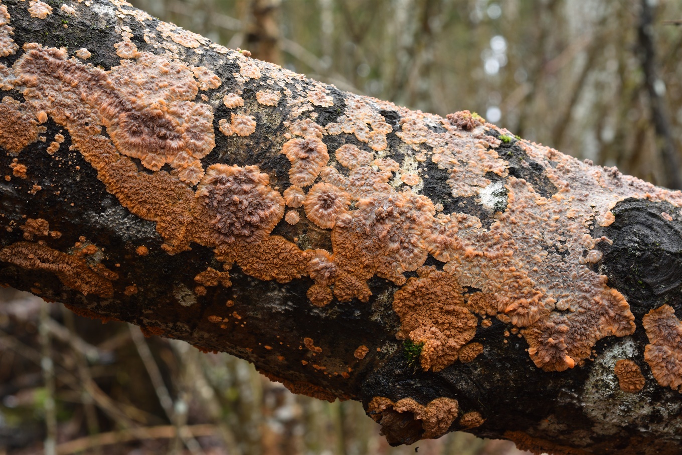 1-2 - Peniophora sp. (Вроде, на иве); 3-4 - Stereum sanguinolentum (На ели);