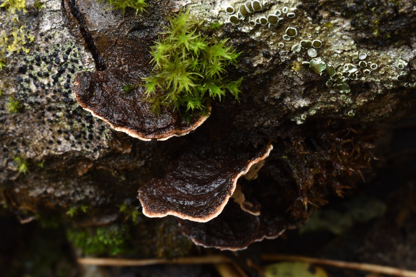 23-26 - Trechispora stevensonii (?); 27-29 - Ganoderma lucidum (Эта находка на финише поездки сильно подняла настроение. До этого видел всего один раз, около пяти лет назад. Не очень понял, на чём росла, но кроме дуба и ёлки там вроде вариантов не было).