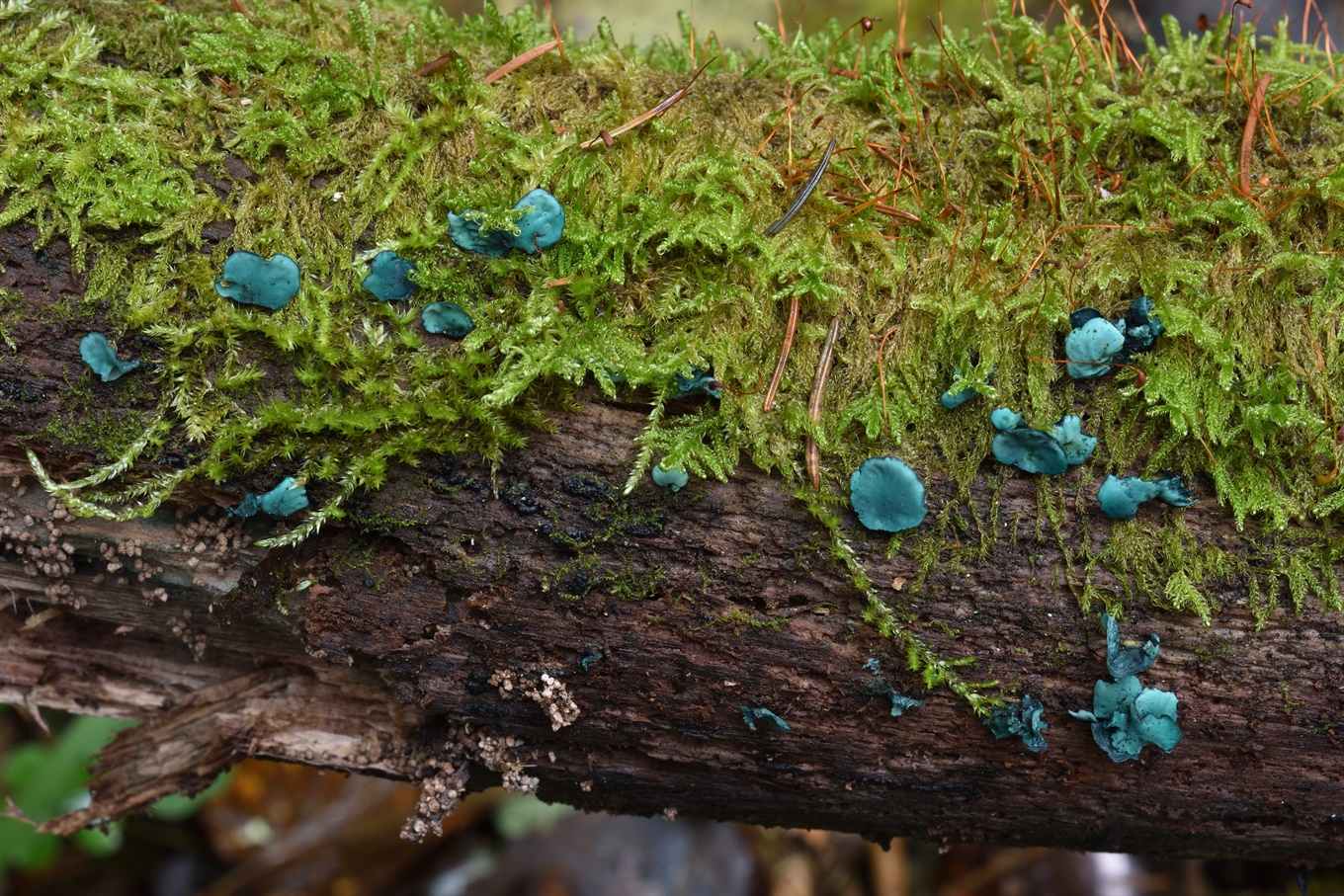 24-25 - Chlorociboria aeruginascens; 26-27 - Imleria badia; 28-29 - Collybia tuberosa; 30-31 - Tolypocladium ophioglossoides & Elaphomyces granulatus; 32-33 - Mycena rosella;