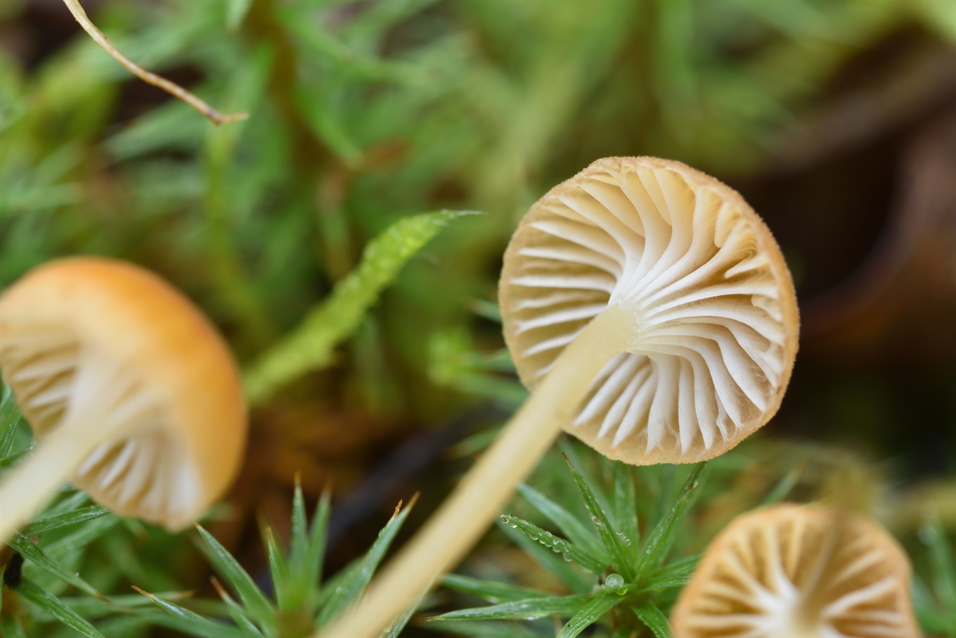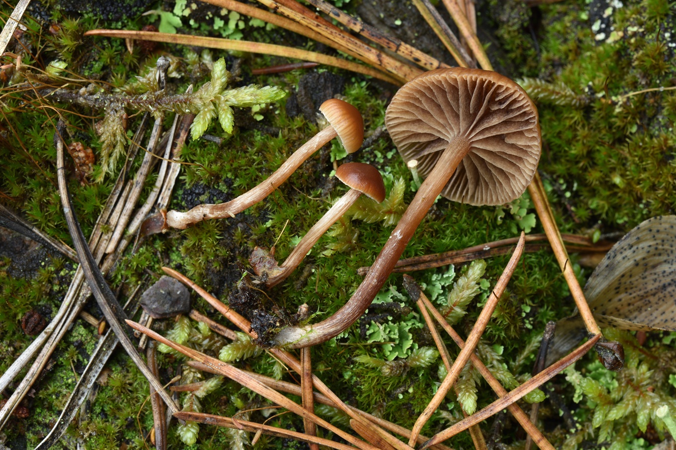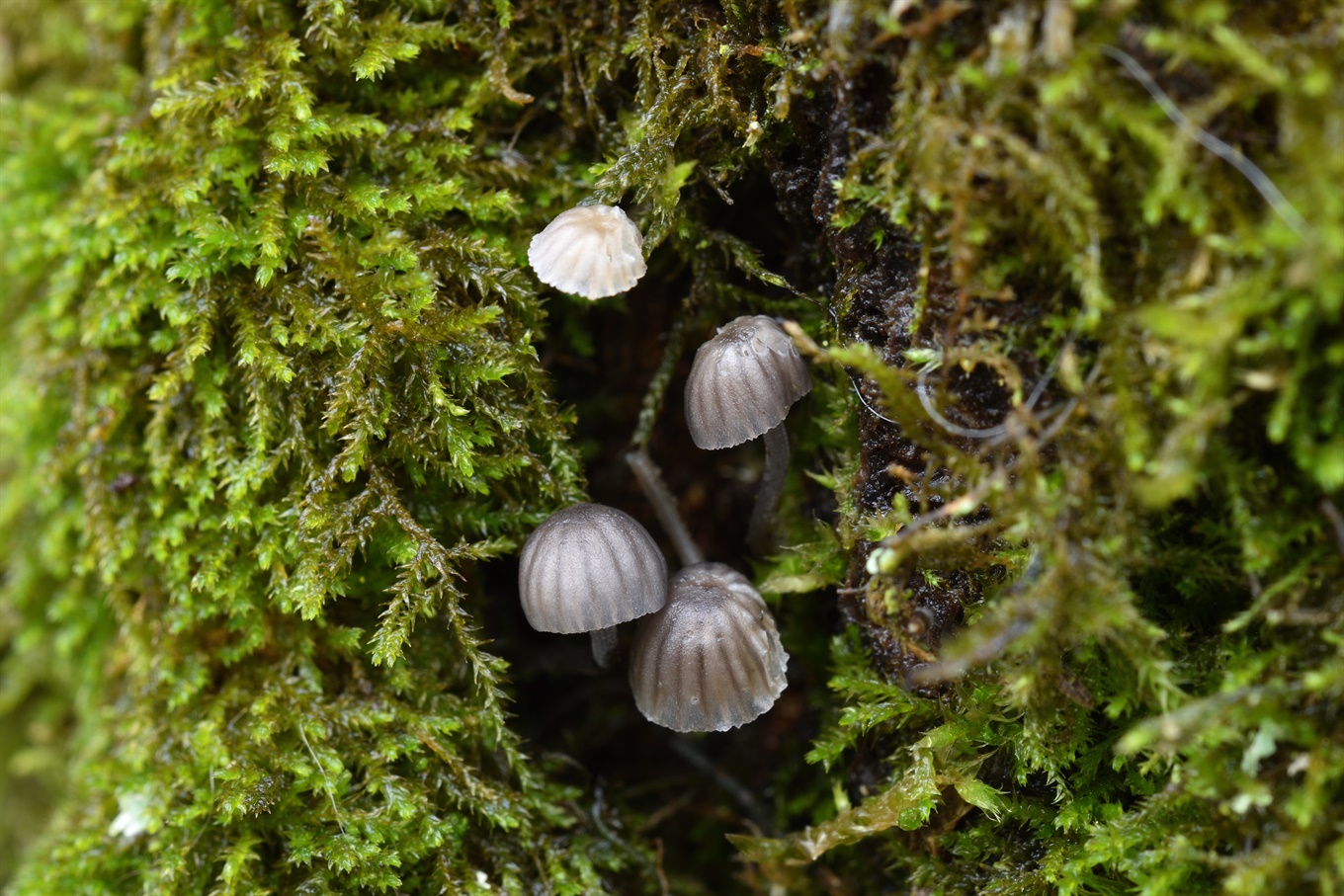 1-2 - Entoloma cf sericeum; 3-5 - Rickenella fibula;