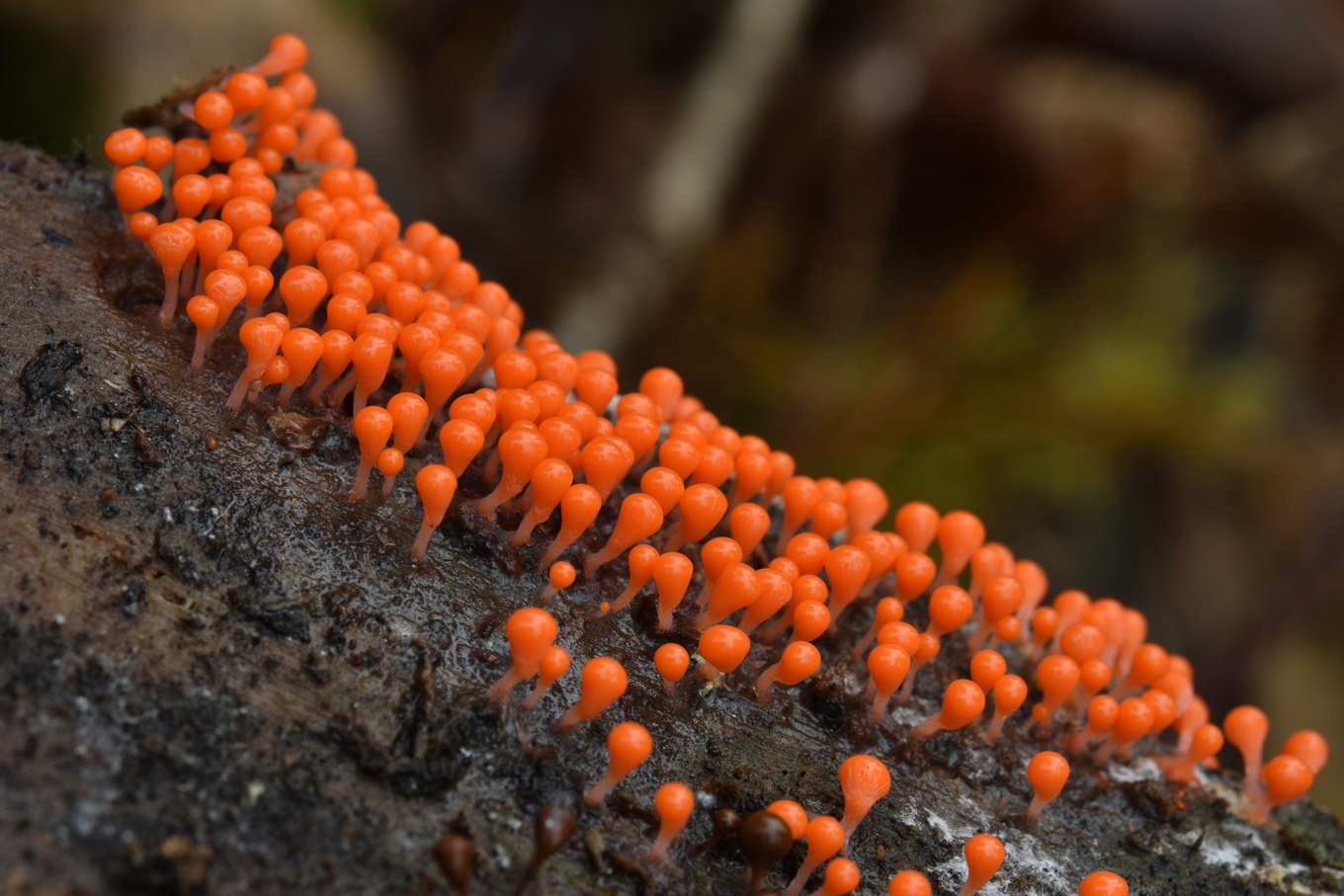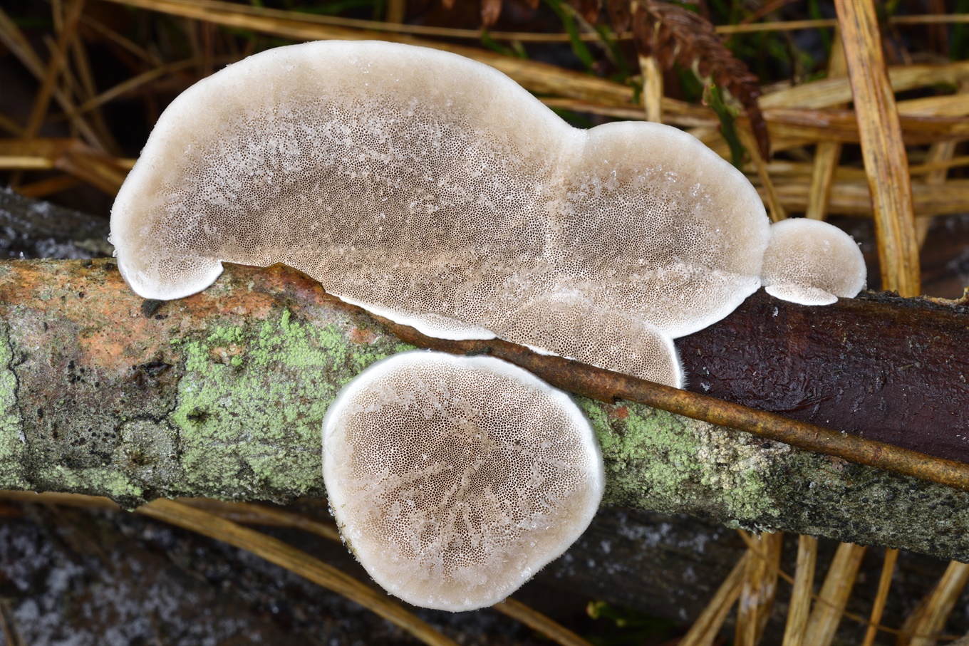 50 - Ascocoryne sarcoides; 51 - ?; 52 - Postia ptychogaster; 53-54 - Panellus stipticus;