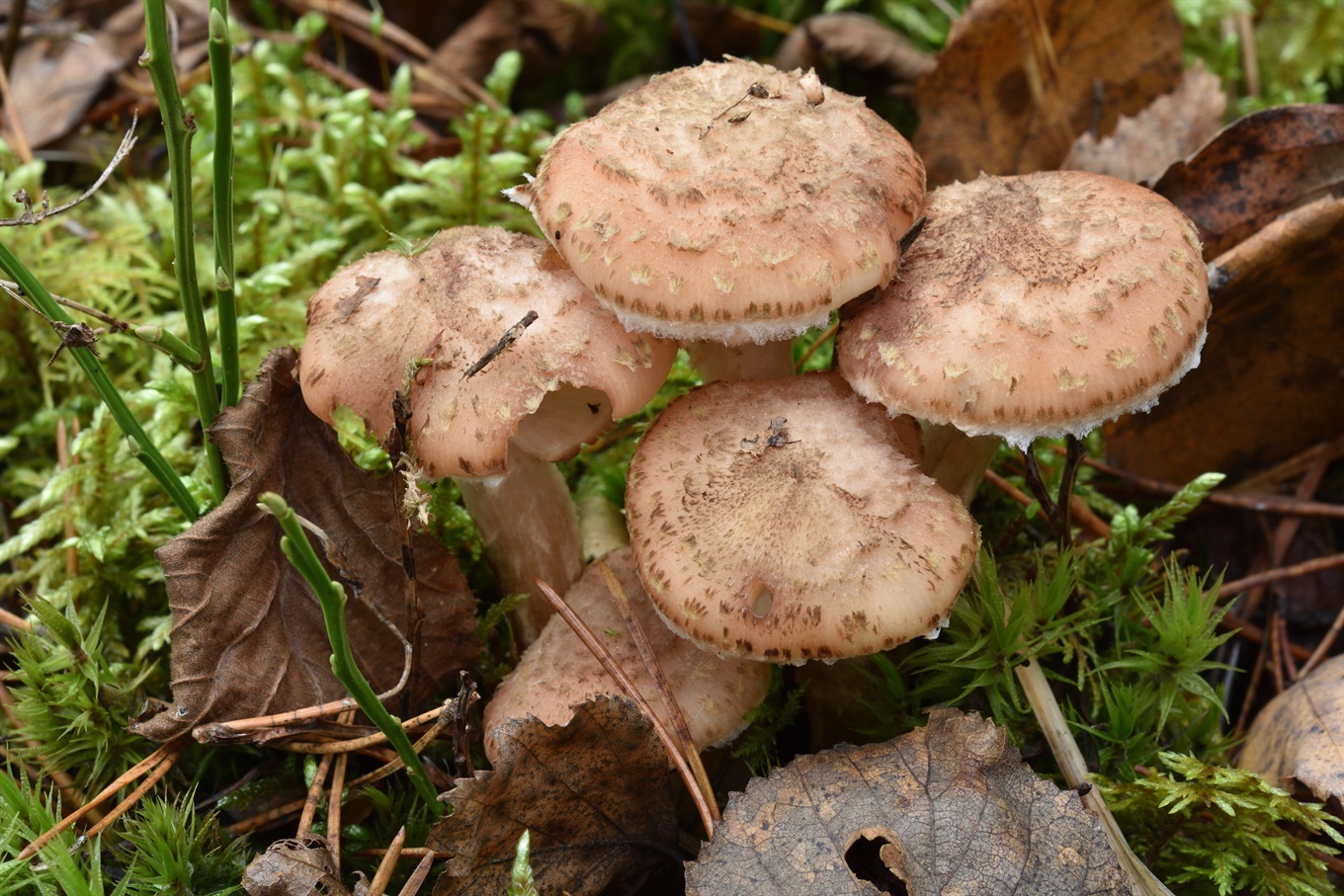 1-2 - Exidia recisa; 3-4 - Paralepista flaccida; 5 - Albatrellus cf subrubescens;