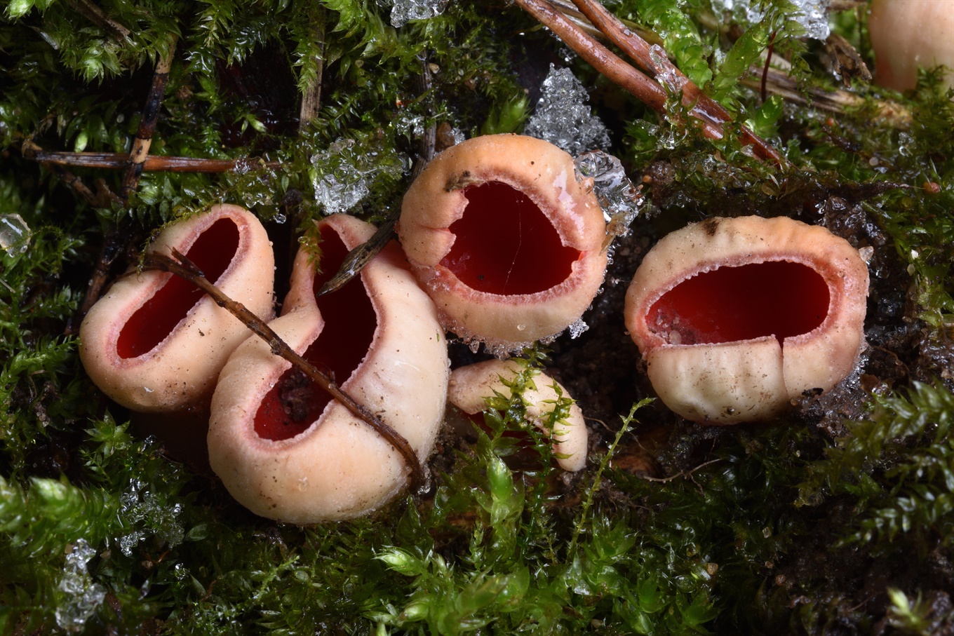 19-20 - Sarcoscypha austriaca; 21 - ? (На сосновой коре); 22 - Stereum sanguinolentum (На ели);