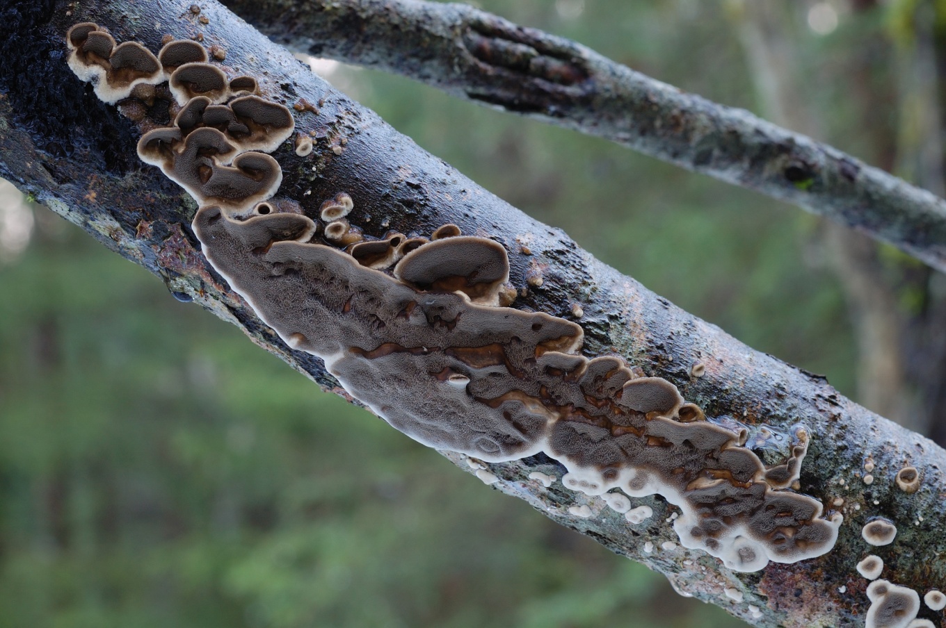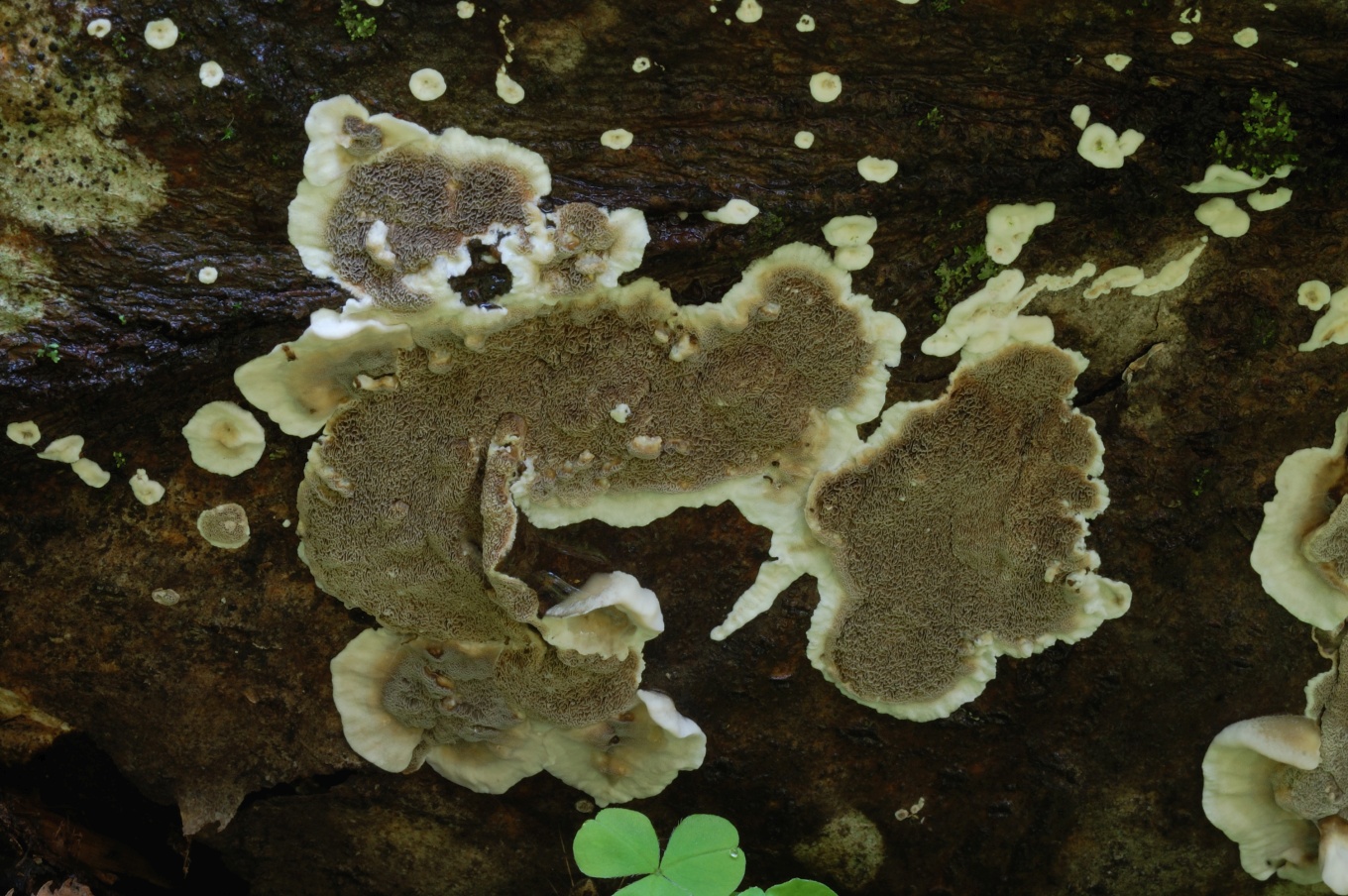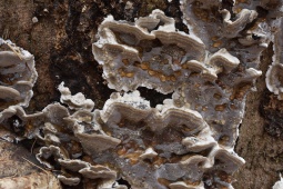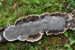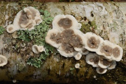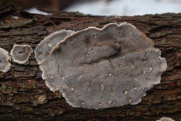 - Однолетнее, довольно жёсткое. Обычно имеет небольшие шляпки (радиусом до 4 см и толщиной до 8 мм у основания), которые часто расположены черепитчато на общем распростертом основании. Реже формирует полностью распростертые плодовые тела.