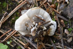- Верхняя поверхность (когда присутствует) войлочная или покрыта волосами. В молодости светлая, позже приобретает коричневые, сероватые или черноватые тона, часто с неясными зонами.
