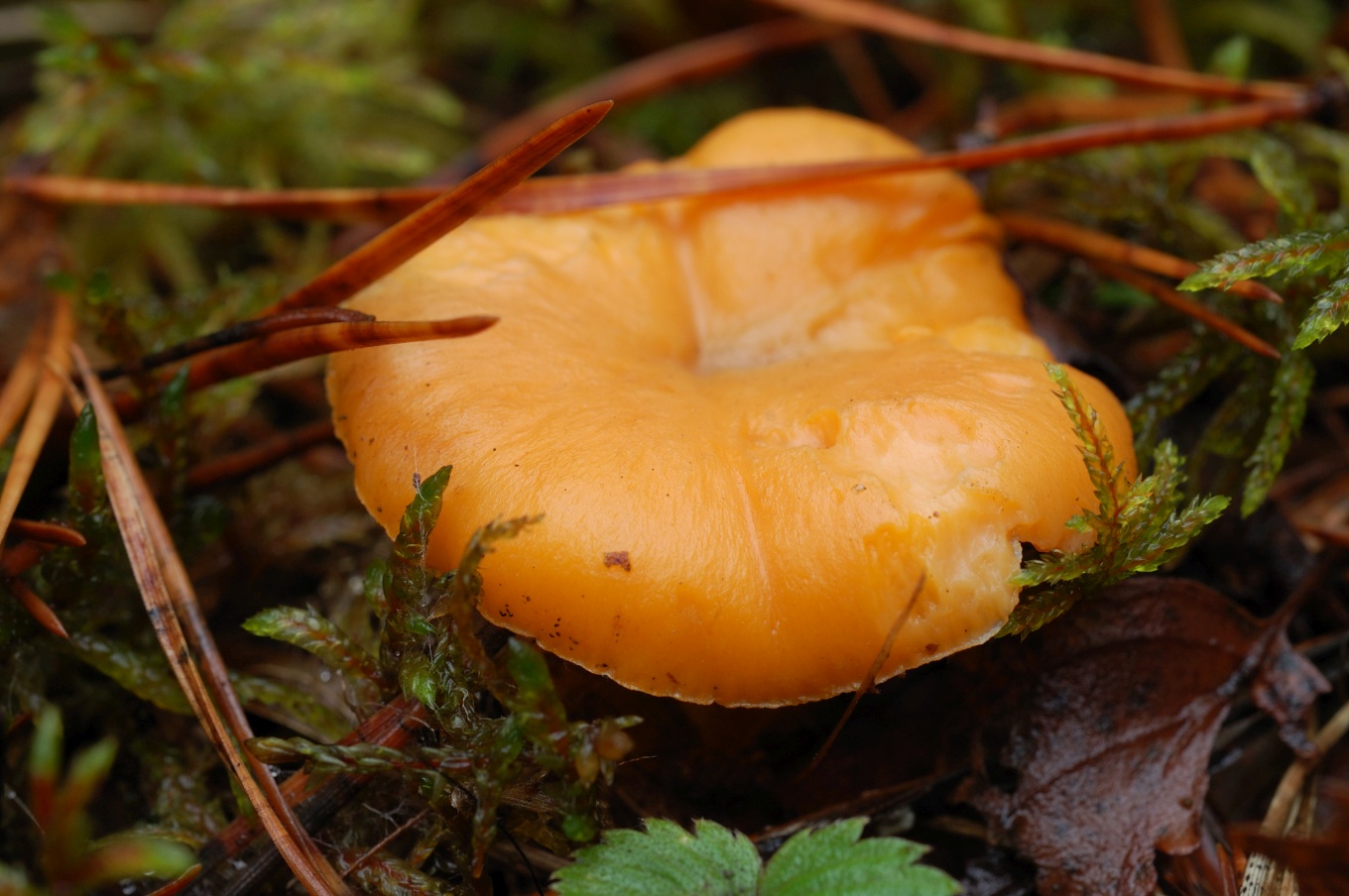 Шляпка: Диаметром до 8-10 (по литературным данным, до 15) см. Плоско-выпуклая, затем с углублением в центральной части. Обычно оранжево-жёлтого или охристого цвета, хотя тут могут быть и другие варианты (от белого до розоватого).