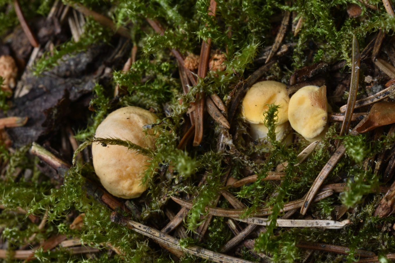 Гименофор: Складчатый; жёлтого или бледно-желтоватого цвета. Толстые "пластинки" нисходят на ножку, а в верхней части могут разветвляться.