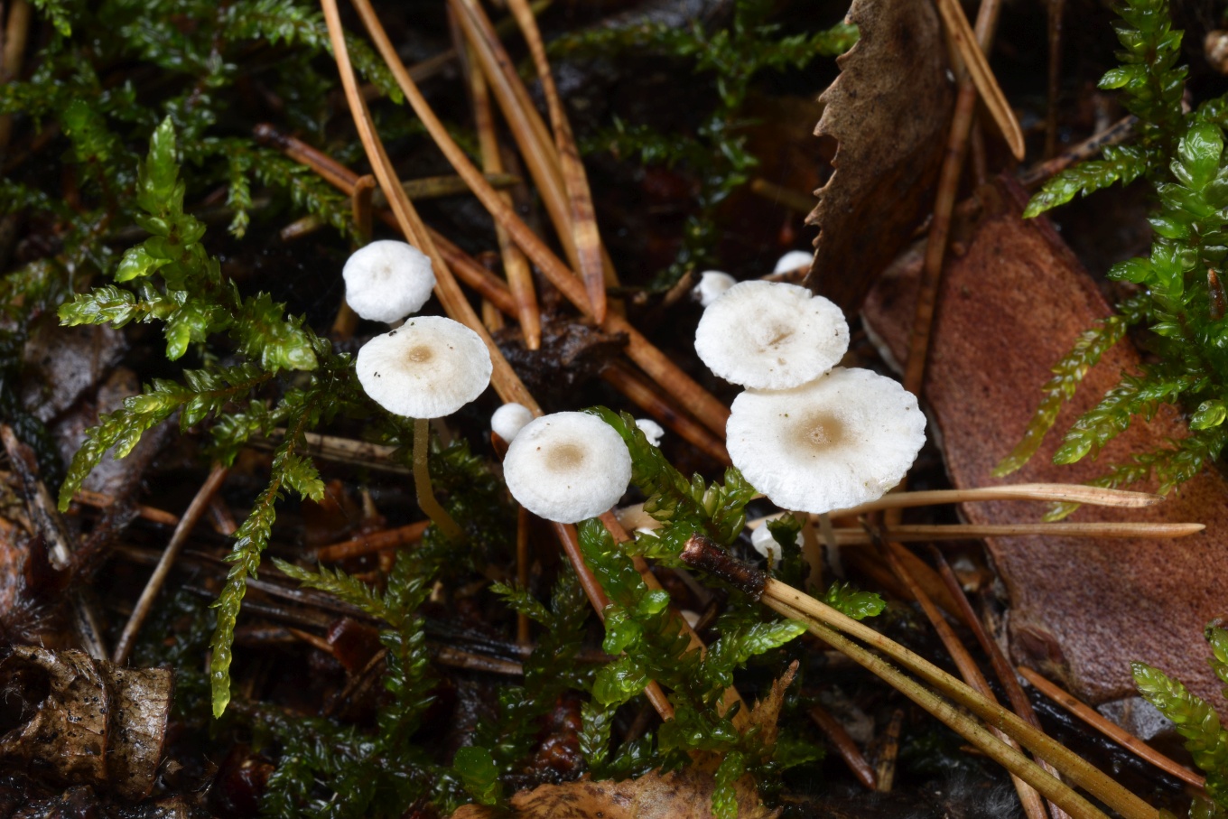 Шляпка: Диаметром до 1.5 (2) см. Плоско-выпуклая, гладкая или шелковистая, беловатая (в центре потемнее, до коричневатого).
