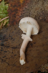 Шляпка: Диаметром до 3 - 6 см. Выпуклая, затем более распростёртая, часто с бугорком в центре. Поверхность зернистая, сухая. Розовато-сиреневатая, розовато-бежевая (до беловатого по краю). Край со светлыми свисающими остатками покрывала.