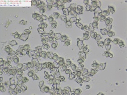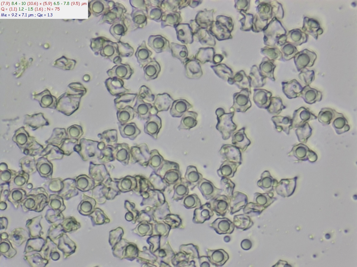 Пластинки: Редкие, восходящие, узко приросшие к ножке. Желтоватые, затем розоватые от созревающих спор.