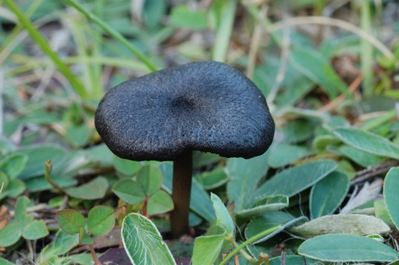 Шляпка: Диаметром до 3-4 см, чуть плоско-выпуклая, с углублением в центре. Волокнистая, мелкочешуйчатая (особенно в центральной части), сухая. Тёмно-синяя, сине-чёрная или тёмно-сине-серая.