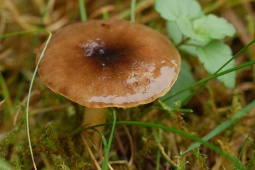 Шляпка: Диаметром до 4 - 6 см. Выпуклая, затем более или менее распростёртая. Клейкая. Как правило, оливково-коричневая. В центре может быть очень тёмной, по краю бледнее и нередко с примесью желтоватых или оранжевых тонов.