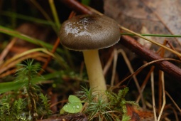 Ножка: Высотой до 6 - 8 см, толщиной до 1 см. Кремовая, с возрастом становится всё более жёлтой. В верхней части с кольцевой зоной, ниже которой клейкая.