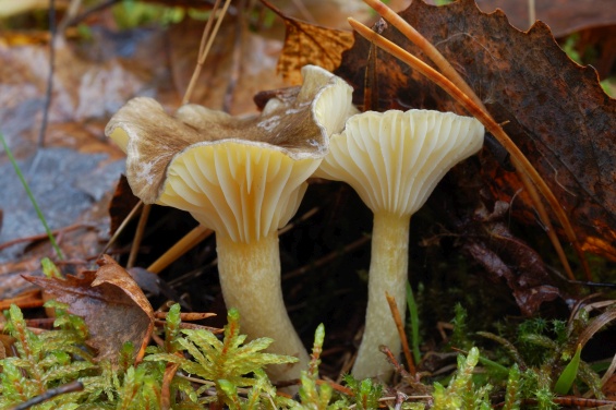 Пластинки: Нисходящие. В молодости кремовые, затем становятся всё более жёлтыми.