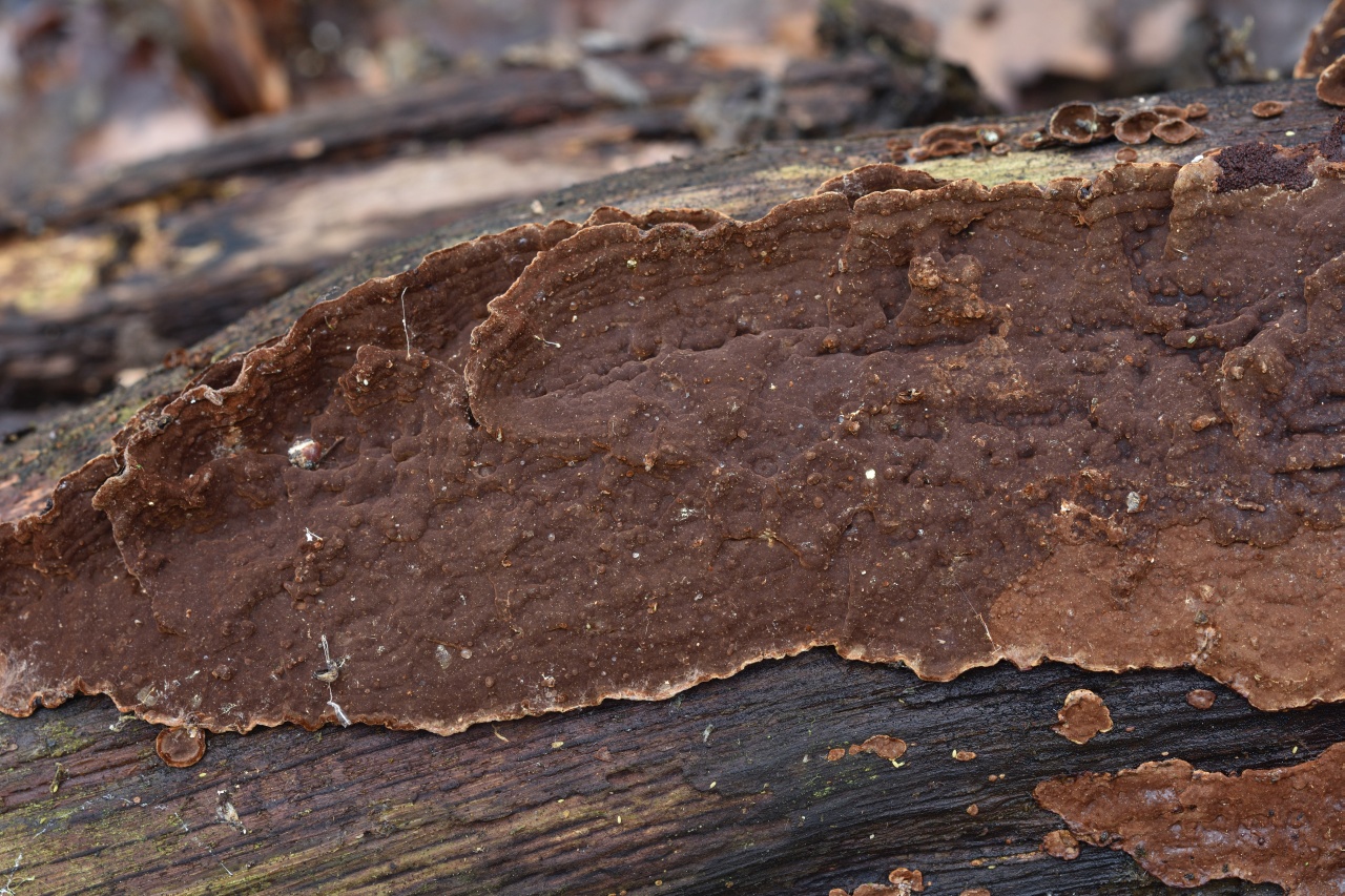 Другие названия: Stereum ferrugineum (Bull.) Fr.; Гименохете ржавая