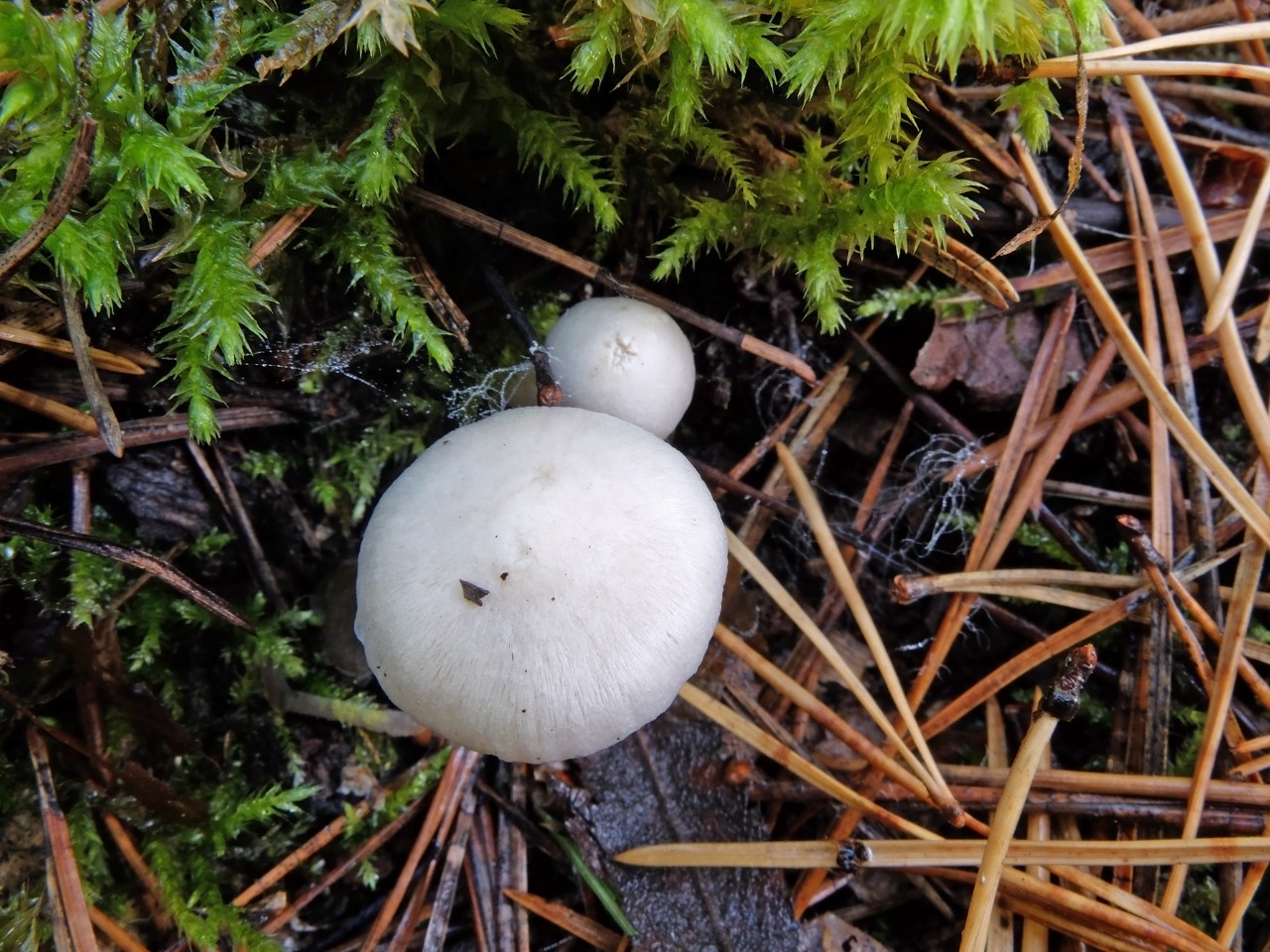 - Окраска шляпки первоначально беловатая из-за велипеллиса, позже преимущественно грязно-беловатая до цвета грязной слоновой кости с желтоватым оттенком, бугорок обычно беловатый из-за велипеллиса;