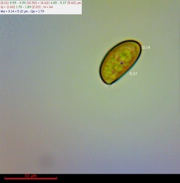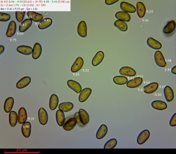 - Споры удлиненной формы, размер в среднем 9,4×5,1 мкм;