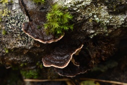 Другие названия: Stereum bicolor (Pers.) Fr.; Stereum fuscum (Schrad. ex J.F. Gmel.) P. Karst.; Лакситекстум двухцветный