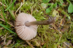 Пластинки: Свободные, серовато-бежеватые, затем розовеют от созревающих спор.