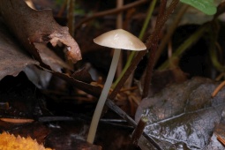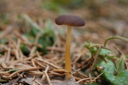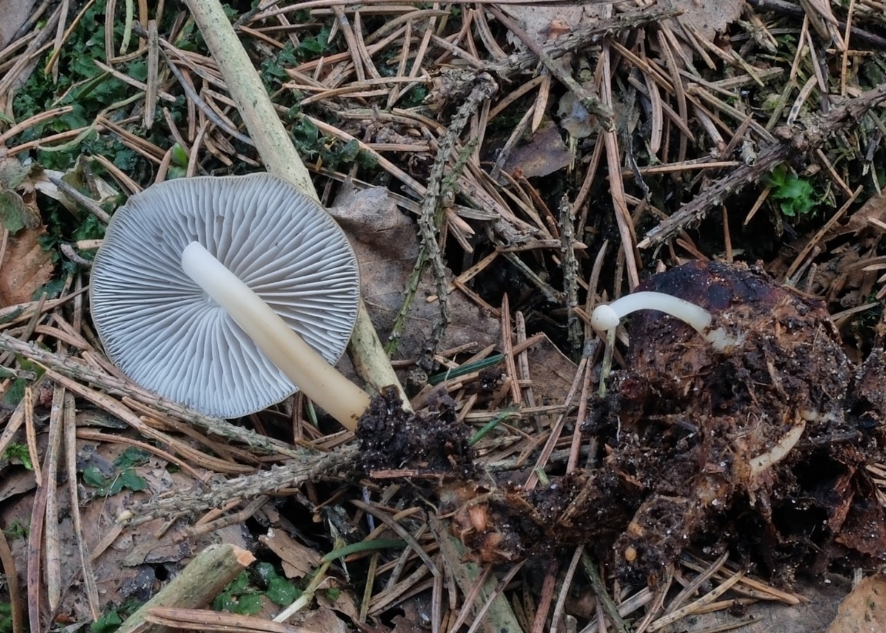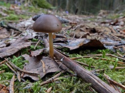 Ножка: Высотой до 7 см, толщиной до 2 мм. Нередко укореняющаяся. Матовая; вверху светлая, ниже охристая или красноватая.