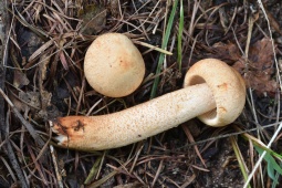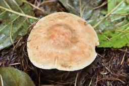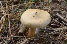 Шляпка: Диаметром до 5-8 см, плоско-выпуклая или почти распростёртая, с довольно тонким краем. Кремовая или рыжевато-коричневато-охристая. Сухая, несколько зернистая.